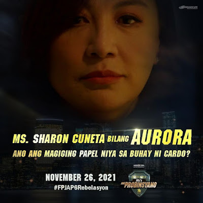 “November 26 na po ang simula ko sa FPJ’s ANG PROBINSYANO!!! Kita-kits po!!!” Sharon said in a post on her Instagram account as she shared a moody video teaser featuring her character Aurora, who is said to have a major impact in Cardo’s (Coco Martin) life and his ongoing quest to protect the country.